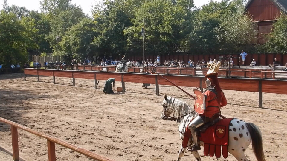 På Middelaldercentret, ved Nykøbing Falster, kan du opleve storslåede ridderturneringer,